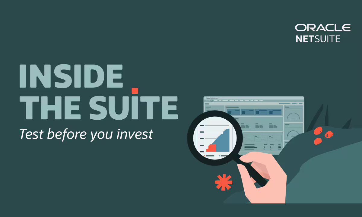 Take a look Inside the Suite through a free NetSuite demo account and see how easy it is to streamline complex processes, generate timely reports, and track progress toward crucial metrics with the click of a mouse. Best of all, this session comes at no cost to you!